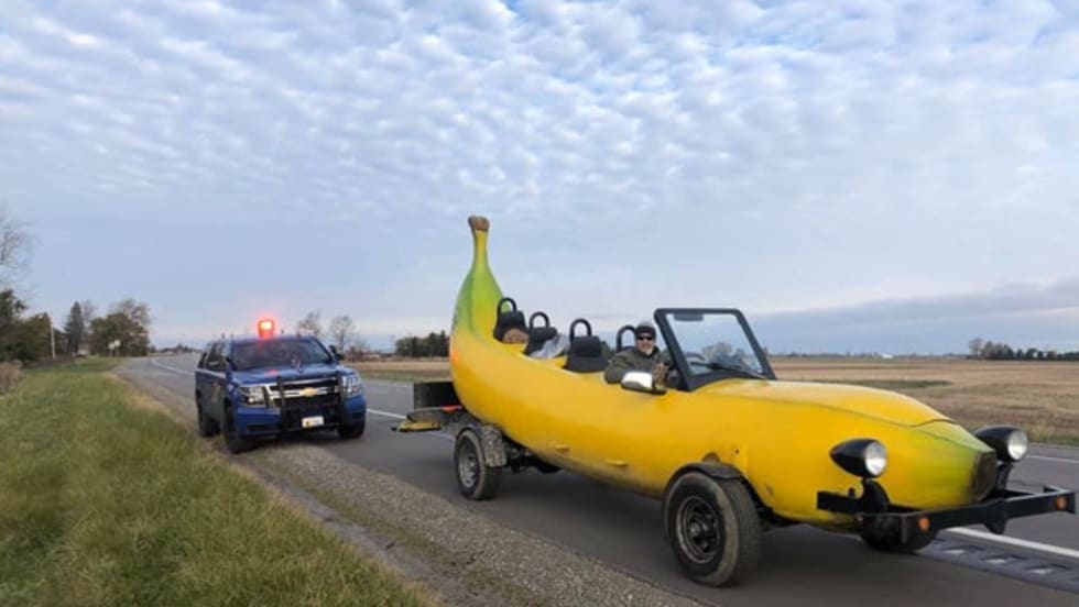 Trooper Bill Strouse saw a vehicle that looked like a giant banana traveling down a rural road and decided to effect a traffic stop—not for a violation, but to express appreciation for the craftsmanship of the car.