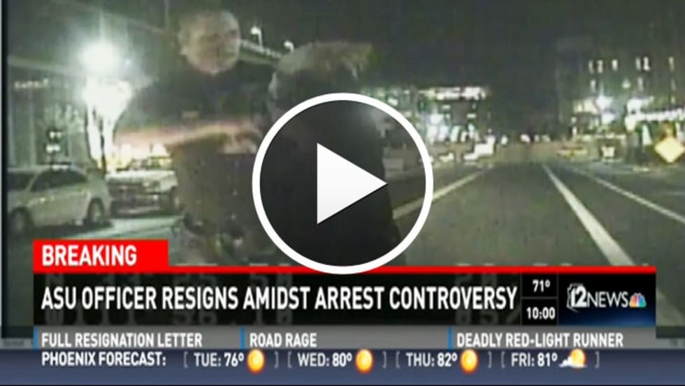 An Arizona State University police officer who has been fighting to keep his job resigned instead Monday after an independent investigation found fault with his arrest last summer of a university professor.