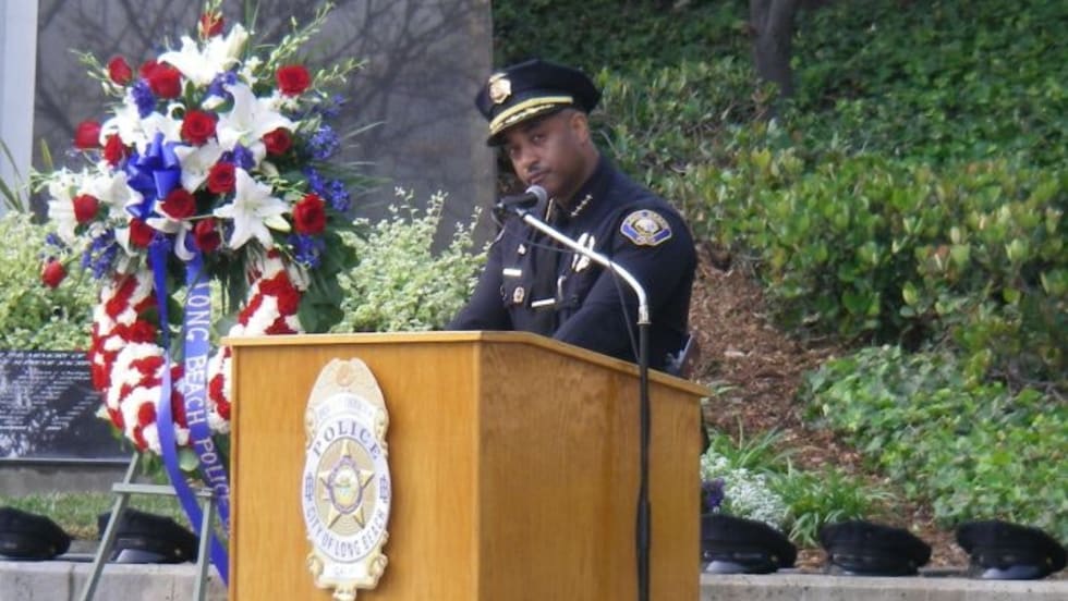 Two days after a man armed with three weapons fired on Long Beach officers during a pre-dawn gun battle, the Southern California department honored the 28 officers who have died in the line of duty.