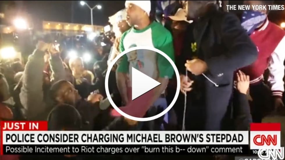 Authorities are investigating whether Michael Brown's stepfather intended to incite a riot last week when he urged a crowd in Ferguson, Missouri, to "Burn this bitch down" after the grand jury's decision was announced, the city's police chief said Tuesday.