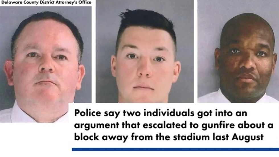 Sharon Hill police officers Devon Smith, 34, Sean Dolan, 25, and Brian Devaney, 41, were hit with a total of 12 counts of voluntary and involuntary manslaughter and reckless endangerment, the Delaware County District Attorney’s Office said Tuesday.