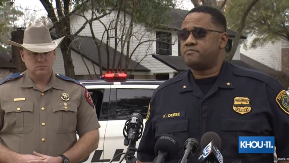 Houston Police are now looking for a man, who had been charged in the stabbing of a police dog Saturday, in connection with the death of his father.