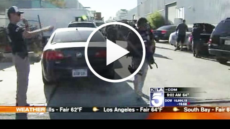 Plainclothes officers chase an armed suspect who opens fire on them, striking an officer in the legs before the suspect is shot by other officers.