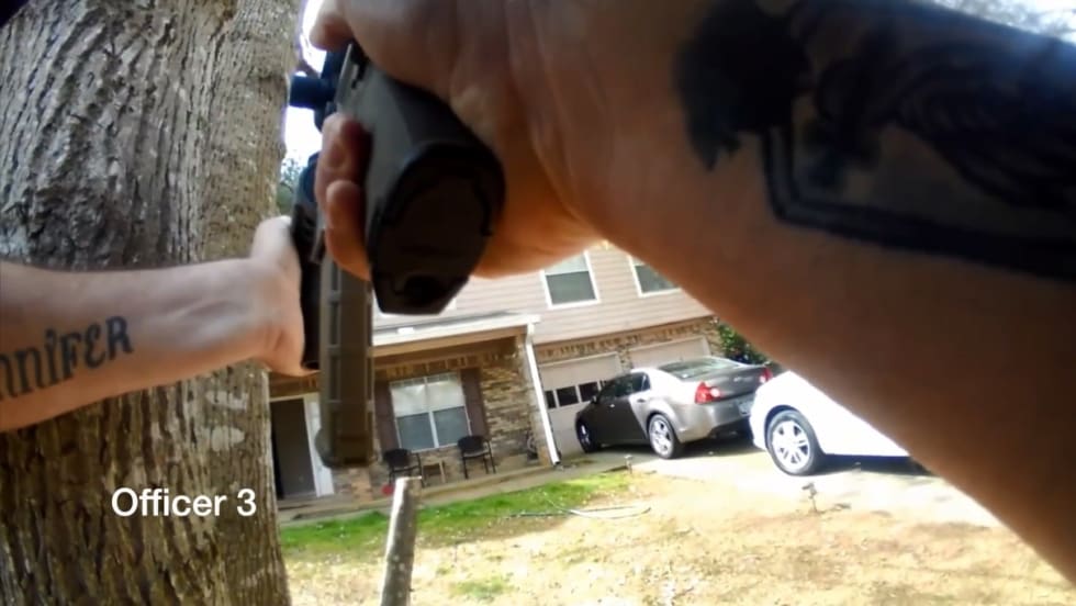 The Henry County (GA) Police Department on Friday released body camera video of the confrontation between a gunman and three of its officers in which two officers were wounded and the gunman subsequently barricaded himself in the residence.