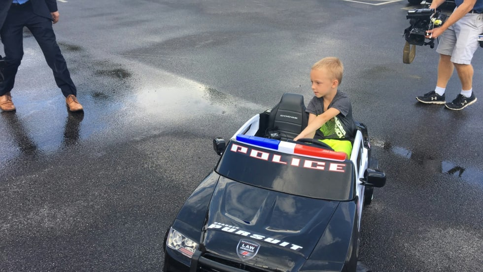 The Edinburgh Police Department, Bartholomew County Sheriff’s Office, and Stinesville Police Department surprised a heartbroken five-year-old boy with a new electric police car after his was stolen.