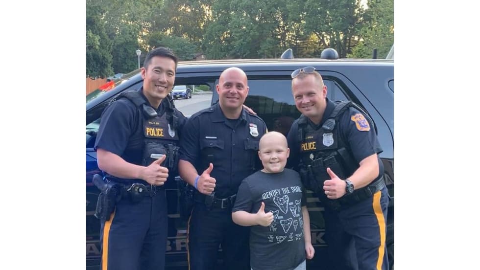 Officers with the East Brunswick (NJ) Police Department visited with a nine-year-old boy battling a rare form of cancer over the weekend.