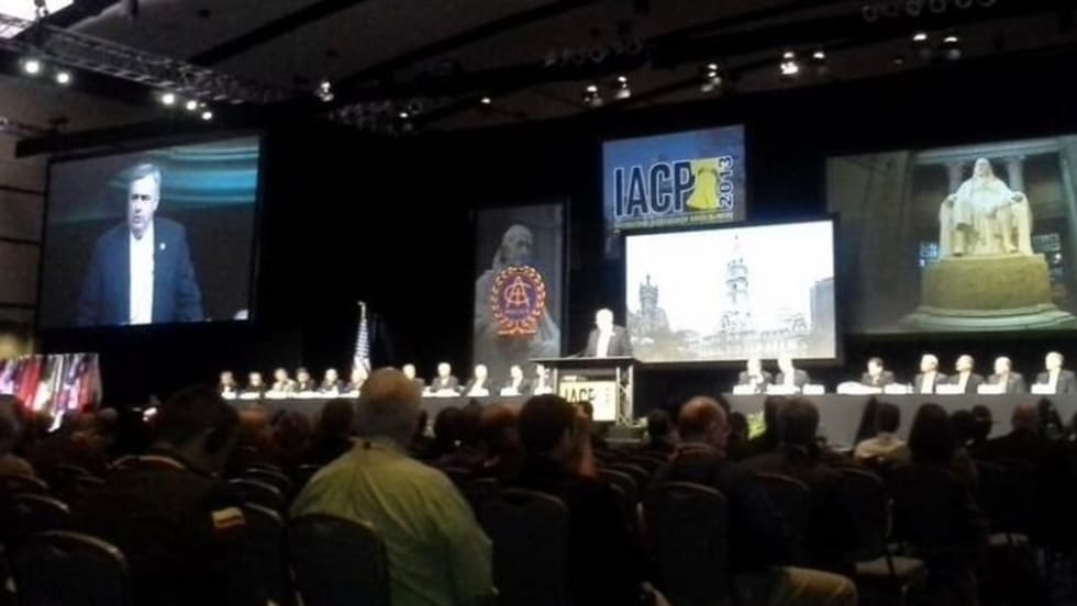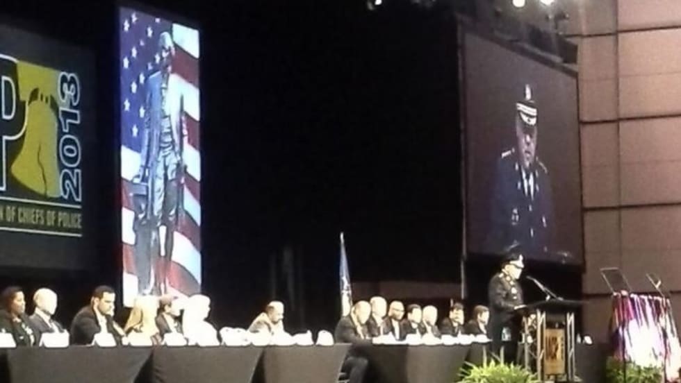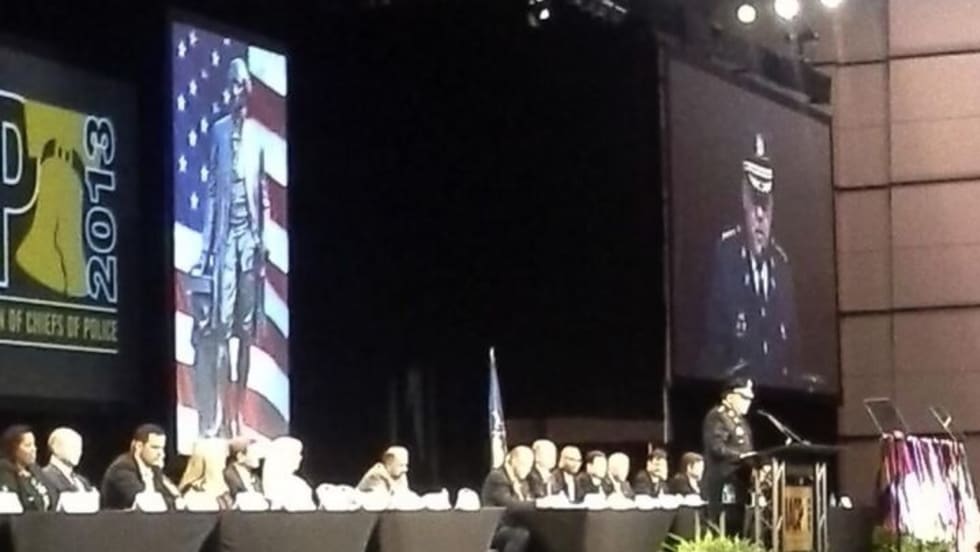 Boston Police Commissioner Ed Davis recounted the law enforcement response to the Boston Marathon bombing and manhunt and recognized several officers involved in the Watertown gun battle at the IACP Conference Tuesday.