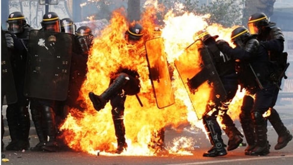 The tweet – sent out by the Autonomous Student Network (ASN) at UT-Austin – states “Instead of #LawEnforcementAppreciationDay how about #LawEnforcementIncinerationDay” next to a photo of a French police officer engulfed in flames after being hit by a Molotov cocktail during last year’s May Day protests.