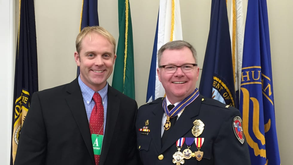 Lt. Brian Murphy, a 2012 Armor Express "save" and now manager of the Armor Express Saves Program, was honored with the Public Safety Officer Medal of Valor during a national ceremony at the Eisenhower Executive Office Building Wednesday.
