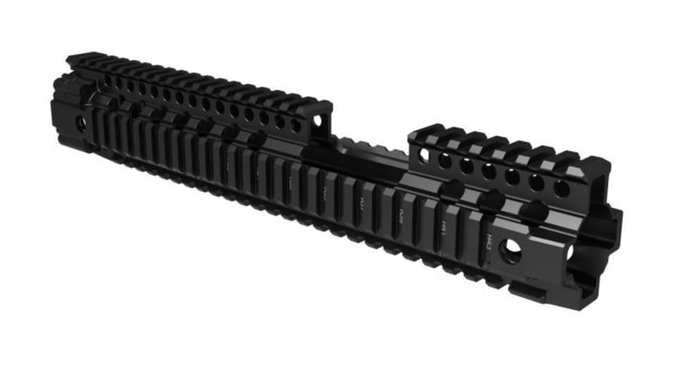 The DDM4 rail uses the company's "bolt-up" system. Instead of six bolts, the DDM4 rail requires only four bolts. The lower rail in this model is closer to the barrel and was designed for the most optimal ergonomics, according to the company.