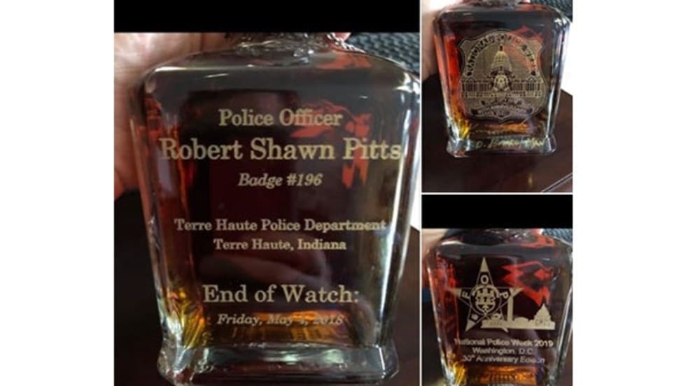 Earlier this year, the Jack Daniels Distillery presented a specially engraved bottle of its whiskey to the family of Officer Robert Pitts of the Terre Haute Police Department, who was killed in the line of duty in May 2018.