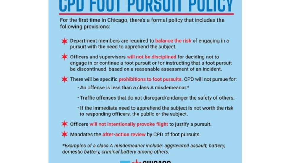Read More →Mayor Lori Lightfoot’s call for police policy changes comes four years after the U.S. Justice Department recommended in a report about CPD’s practices that it adopt a foot pursuit policy.