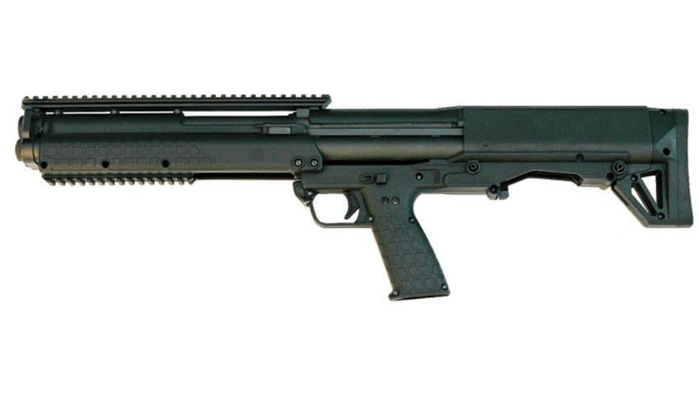 The weapon is similar to the currently available Kel-Tec RFB rifle. As one difference, the KSG ejects downward rather than forward. The KSG weighs 6.9 pounds and is as compact as legally possible with a 26.1-inch overall length and an 18.5-inch cylinder bore barrel.