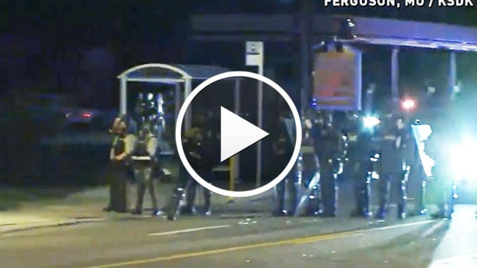 Monday night in Ferguson, Mo., near the site of an officer-involved shooting that killed a reportedly unarmed 18-year-old man, officers in riot gear lobbed tear gas at angry crowds. There were 15 arrests but no reports of looting.