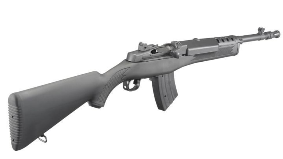 The Mini Thirty Tactical has a blued 16 1/8-inch barrel with a flash suppressor and black synthetic stock. The rifle weighs approximately 6.75 pounds, has an overall length of 37.5 inches, and arrives with one 20-round magazine.