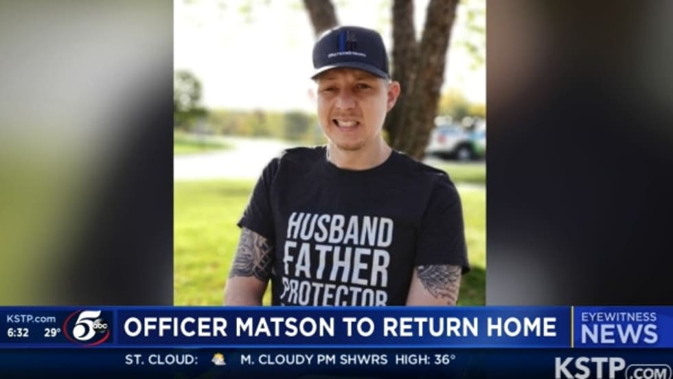 Officer Arik Matson has been undergoing treatment and rehabilitation at a Nebraska medical facility since being shot in the head in January. He now returns home to Minnesota.