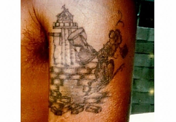 Read More →In addition to advertising gang membership, tattoos provide other details about the bearer. For the incarcerated, images of chains and locks represent the loss of freedom; an hourglass or clock face without hands indicate doing time; a string of numbers may be an inmate's prison ID; one laughing face, one crying face means play now, pay later or my happy life, my sad life; a tombstone with numbers may indicate years of incarceration; the face of a female crying usually means someone on the outside is waiting for them. Caption information provided by POLICE gang expert Richard Valdemar.