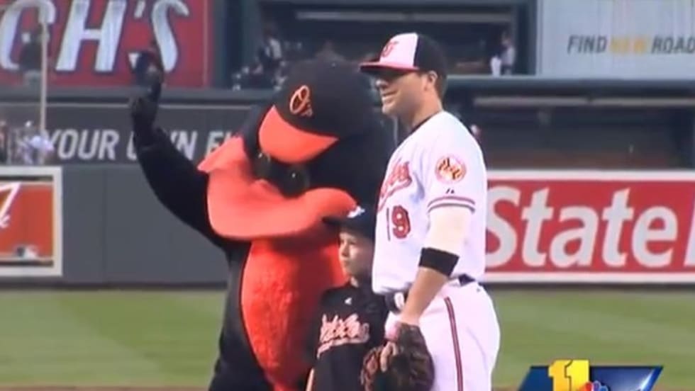 The son of slain Baltimore County police officer Jason Schneider threw out the first pitch at Thursday's Orioles game against the Chicago White Sox.