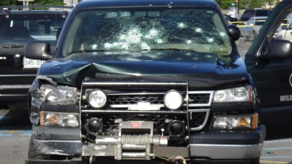 Crittenden County Sheriff Dick Busby, who was unarmed and wounded in the incident, has said "all hell broke loose," after officers pulled over the white minivan driven by the suspects.