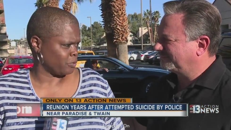 More than 15 years after a Las Vegas police officer made a life-saving decision, he reunited with the veteran he helped save.