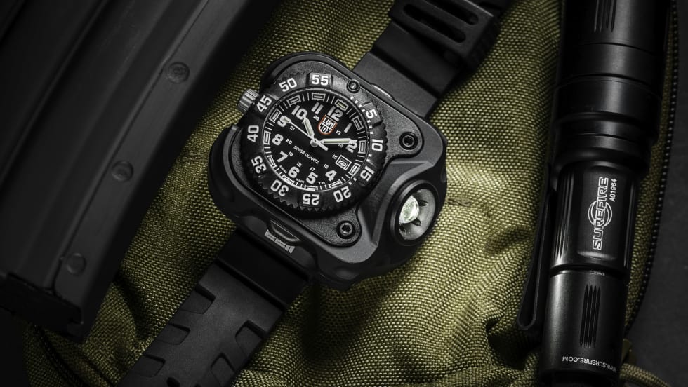 SureFire has expanded its line of 2211 WristLights—a whole new category of hands-free illumination tools—with the release of its new SureFire 2211 Luminox, whose output maxes out at 300 lumens. This new rechargeable WristLight features a high-performance LED focused by the same special refractive optic as the original 2211 WristLight, but it also sports a high-quality timepiece from legendary Swiss watchmaker Luminox.