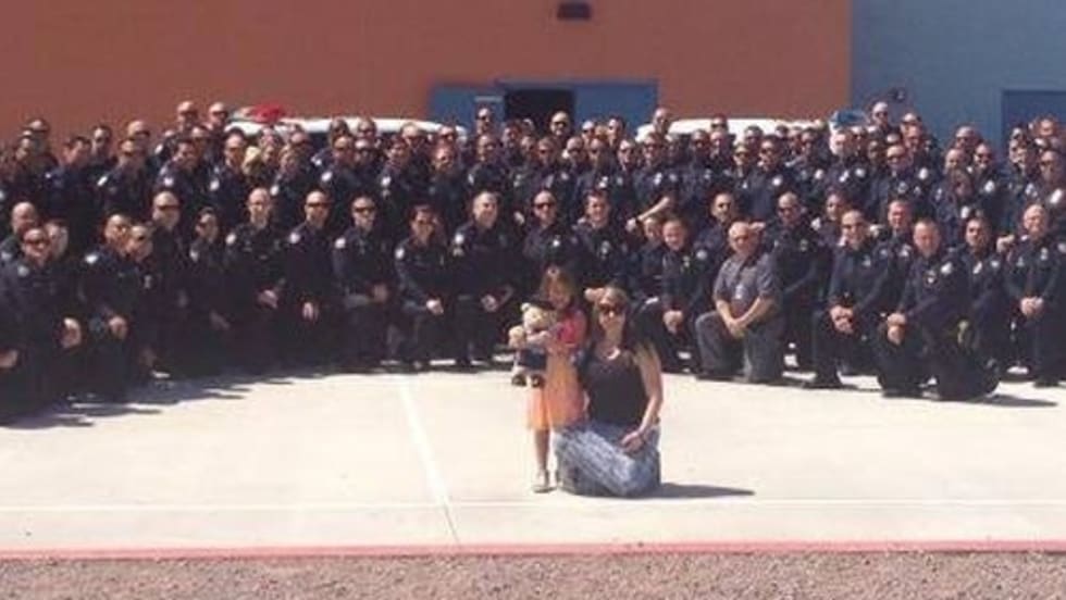Phoenix-area officers demonstrated the strength of the Thin Blue Line on Wednesday, as a large group of uniformed personnel showed up to attend the kindergarten graduation ceremony for the daughter of a fallen officer.