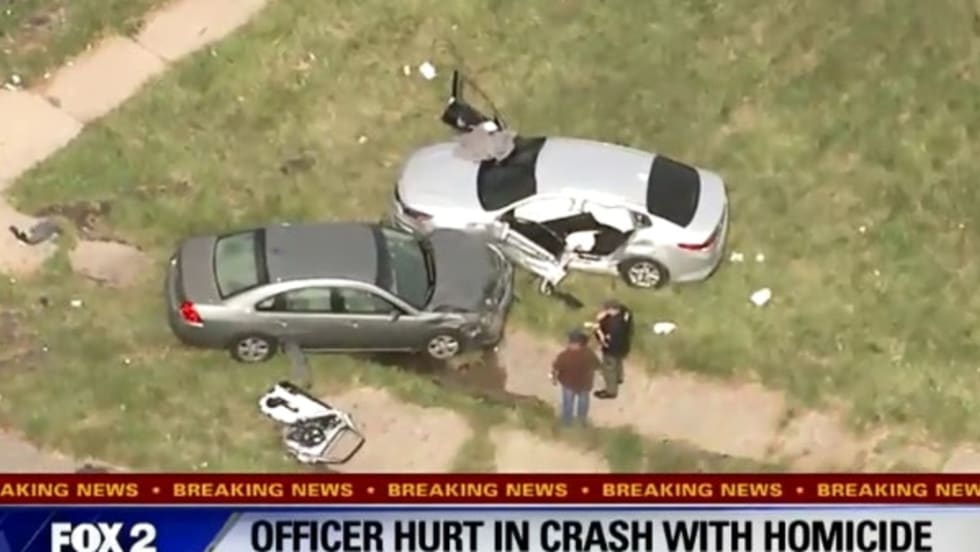 An officer with the Detroit Police Department reportedly suffered a dislocated shoulder when his vehicle was struck by another car on Tuesday afternoon.