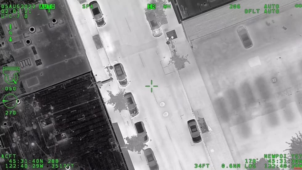 “I’ve got two shooters in sight, I’m going to stay with them,” the pilot tells ground units as he continues to track the suspected gunmen.