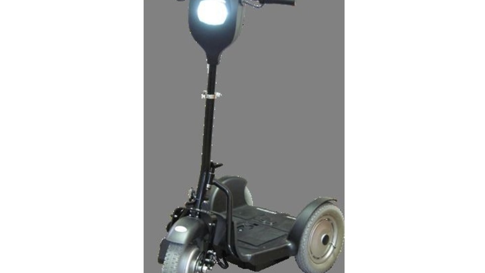 EV Rider's MAXscooter is powered with a 500-watt motor and can travel at speeds of up to 15mph for 20 miles before needing a charge. The removable battery can be re-charged on board or in another location.