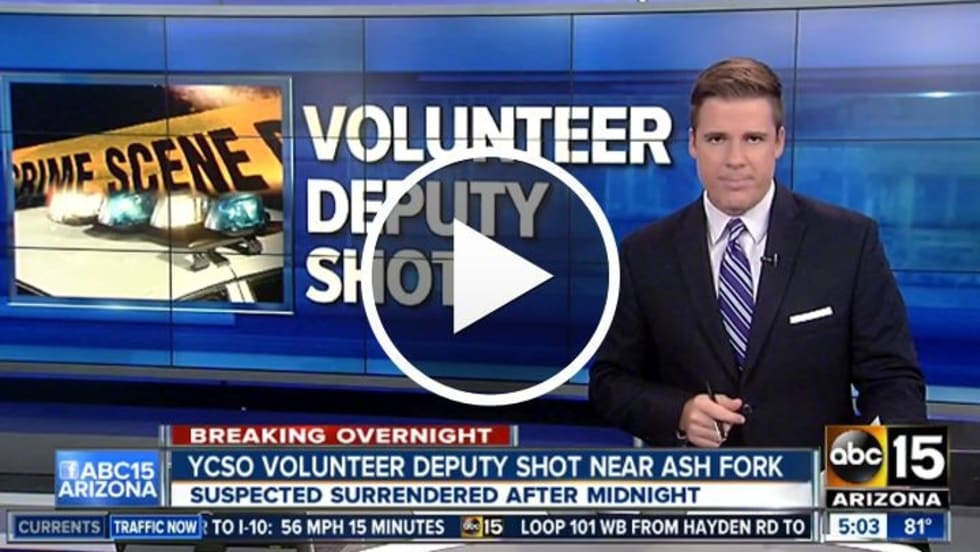 The Yavapai County (Ariz.) Sheriff's Office says one of its volunteers was shot in the hip Thursday night while patrolling in a marked patrol car near Ash Fork. More Here.