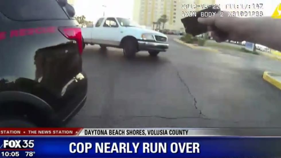 An officer with the Daytona Beach Shores Police Department was nearly struck by a pickup truck fleeing a traffic stop on Wednesday.