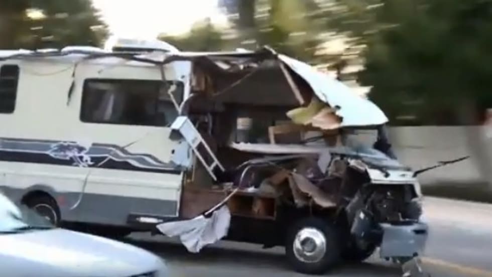 A woman in a stolen recreational vehicle led police in Southern California on a wild vehicle pursuit during which numerous collisions occurred and at least two dogs were left injured.