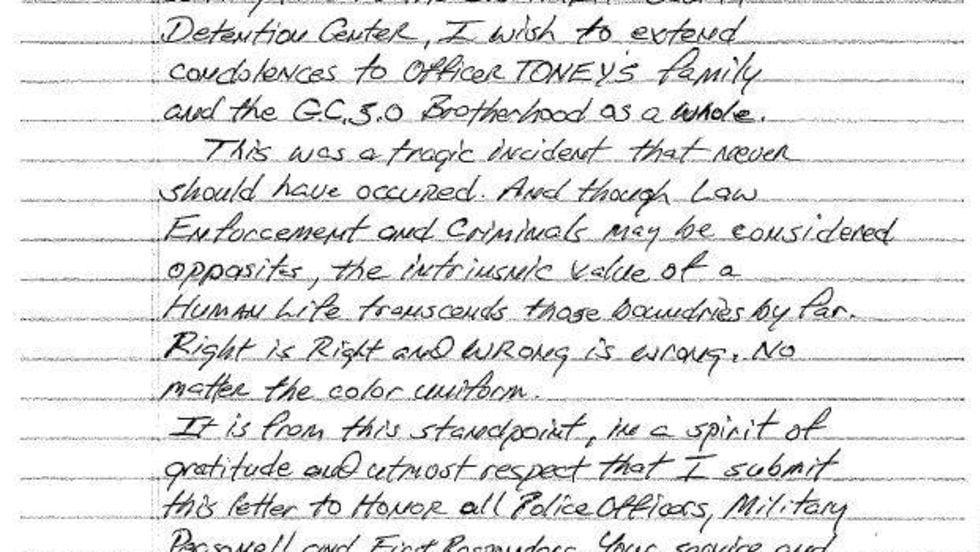 A group of nearly two dozen inmates at the Gwinnett County (GA) Jail signed a letter to Sheriff Butch Conway in support of the agency as it mourns the murder of Officer Antwan Toney, who was killed last month while responding to a call about a suspicious vehicle near a school.
