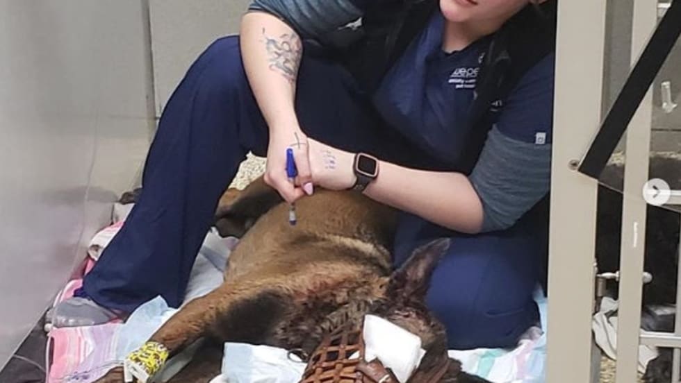 The K-9 with the DeKalb County (GA) Police Department shot during a gunfight at a traffic stop was released from a veterinary hospital on Saturday. Indi lost an eye during the confrontation, but is expected to otherwise recover.