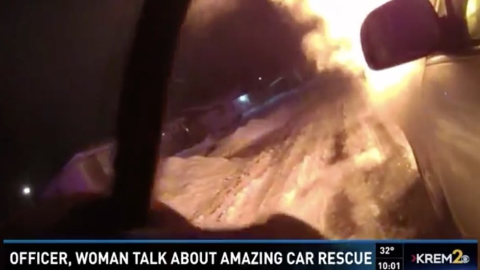 A Santa Fe, NM, police officer rescued an 87-year-old woman from her burning car on Friday after her tire caught fire.
