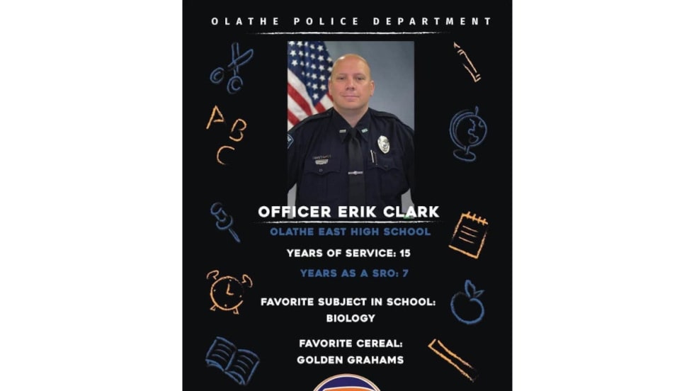 The wounded SRO has been identified as Officer Erik Clark. He has served the Olathe Police for 15 years and 7 as an SRO. He is being called a hero.