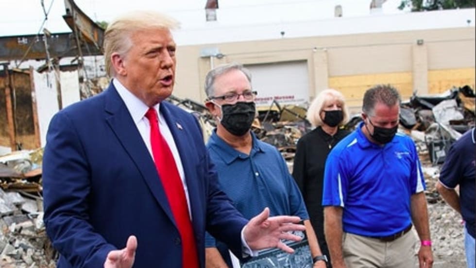 Trump pledged $1 million in federal support to Kenosha law enforcement, $4 million to small businesses, and $42 million to public safety statewide, contrasting that with leftist calls to “defund the police.”
