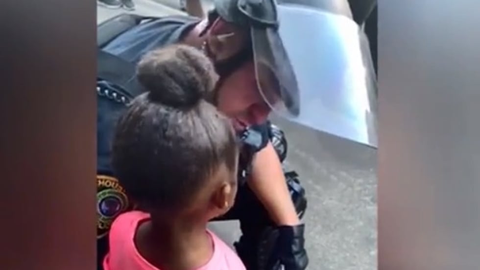 An officer with the Houston Police Department was captured on cell phone video comforting a 5-year-old girl during a protest last week.