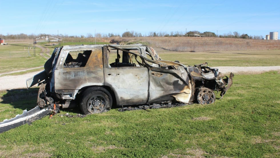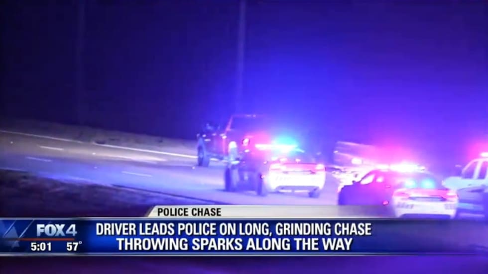 The chase went on for nearly 25 miles—beginning in Highland Park and ending in Frisco—with the trailer carrying the vehicle emitting sparks and appearing to become increasingly unstable.