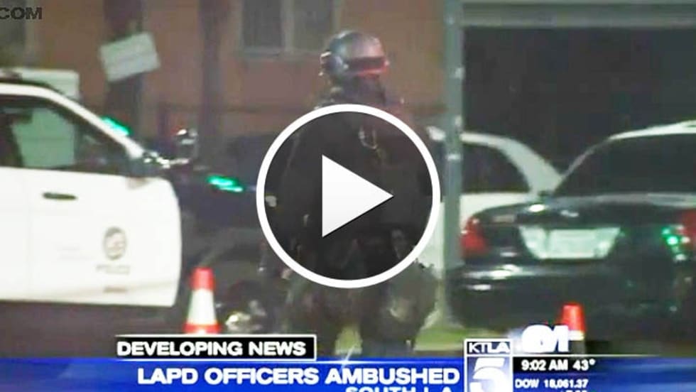 Los Angeles police called off an intense 8-hour manhunt Monday morning that began after two officers were ambushed in an "unprovoked attack" in the Vermont-Slauson neighborhood of South L.A. the previous night.