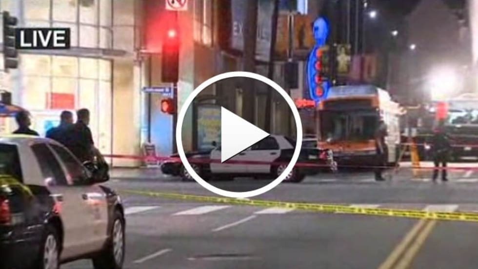 LAPD officers opened fire on a man carrying a 3- to 4-inch folding knife at the crowded Hollywood intersection of Hollywood Boulevard and Highland Avenue about 7 p.m. while responding to a report of an assault with a deadly weapon, said Los Angeles Police Lt. Michael Ling.
