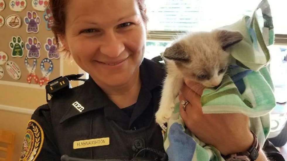 Duluth (GA) Police Officer Heather McNaughton recently came to the aid of a woman and child in need… of a ride to the veterinarian’s office to pick up their kitten.