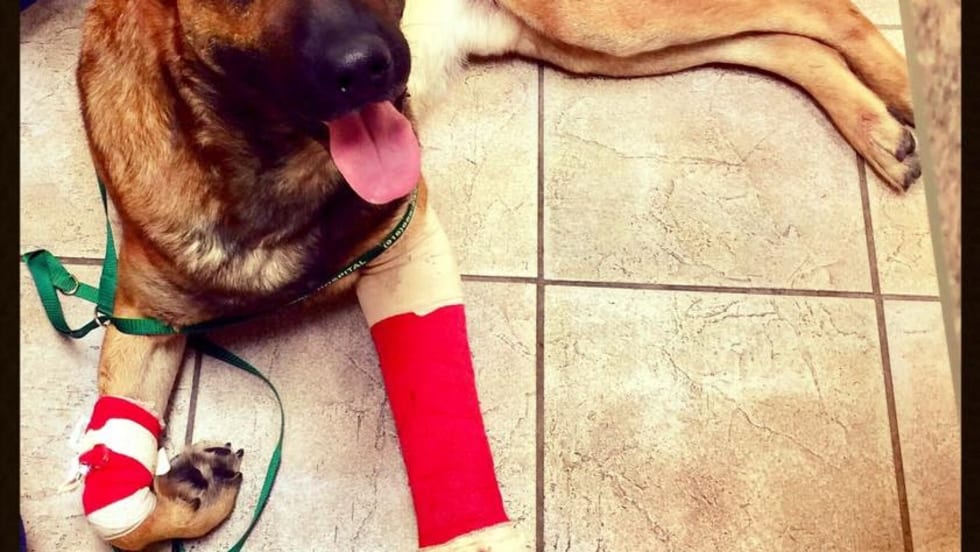 An Elk Grove, CA, Police K-9 is recovering after being shot Saturday night as officers responded to reports of an armed robbery.