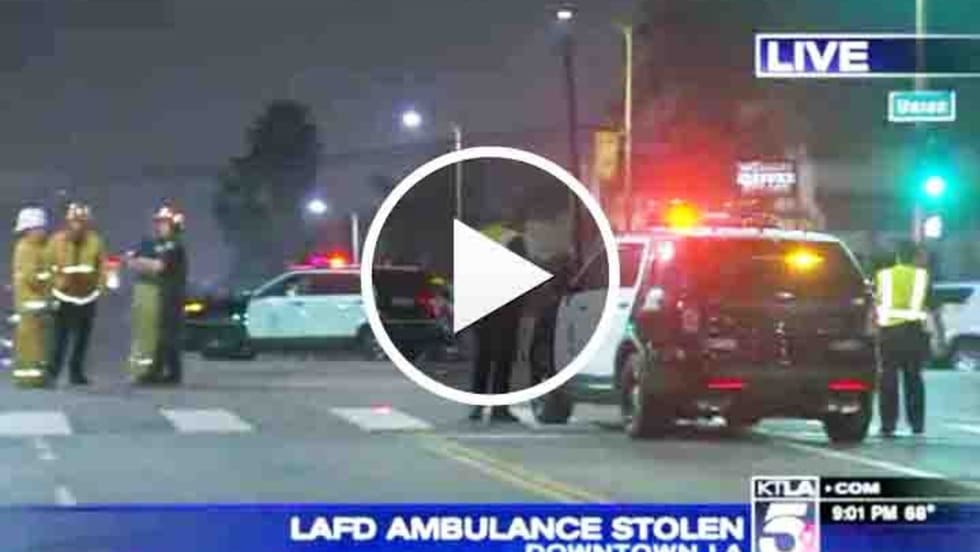 A man being treated by paramedics stole a Los Angeles Fire Department ambulance and led police on a chase that ended in a traffic collision, sending two women to the hospital Sunday night.