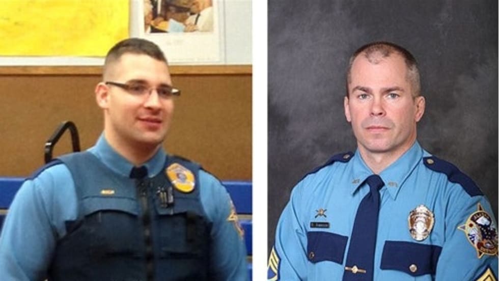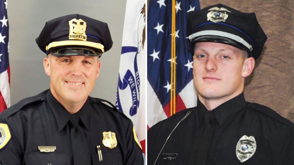 Police charged Scott Michael Greene with two counts of first-degree murder in the shooting deaths of two Des Moines-area officers Thursday — then took him to jail in the handcuffs belonging to the officers Greene is accused of killing.