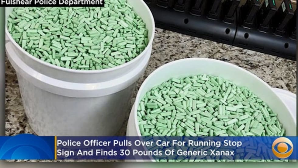 An officer with the Fulshear City Police Department stopped the vehicle for a minor traffic violation. Upon investigation, the officer discovered a haul of 30 pounds of illegal alprazolam (the generic form of Xanax) with an estimated street value of up to $645,000.
