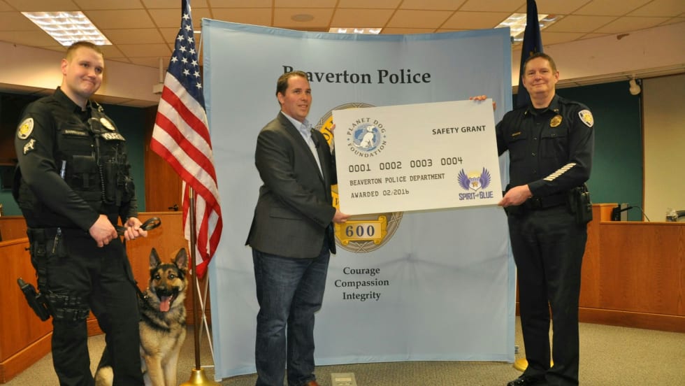 The Spirit of Blue Foundation has awarded a K-9 Safety Grant to the Beaverton (OR) Police Department to contribute to the acquisition of a tracking and article search K-9. The $2,500 grant was sponsored by the Planet Dog Foundation.