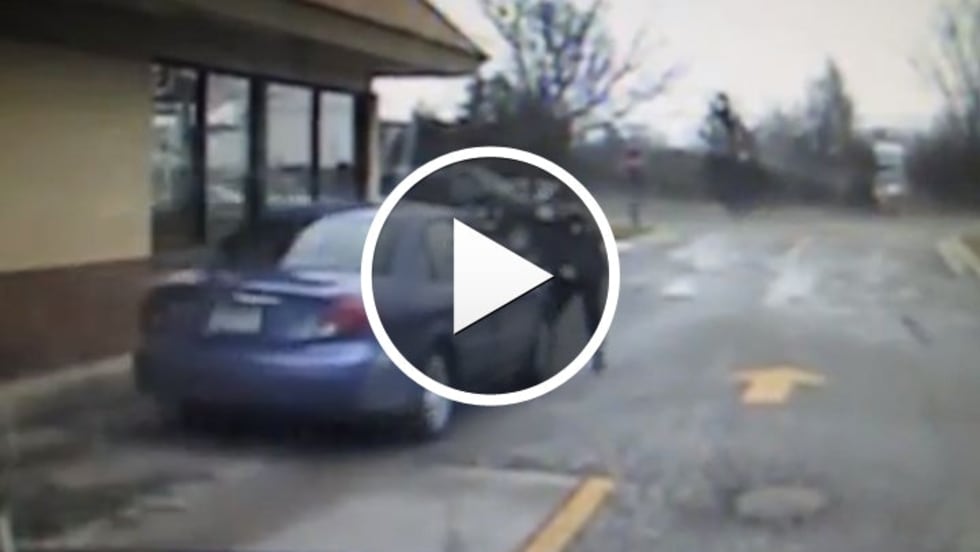 A man later declared "super drunk" under Michigan law struck a Pittsfield Township Police officer at a restaurant drive-thru in February. Police released dash-cam video of the incident from 1:38 p.m. on Valentine's Day to AnnArbor.com.