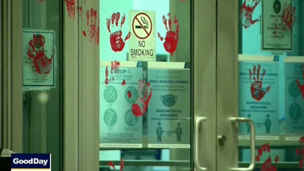 Investigators with the Dallas Police Department are looking into an act of vandalism that left a number of red handprints on the outside walls of the agency's downtown headquarters building as well as the office space of the Dallas Police Association on Thursday night.
