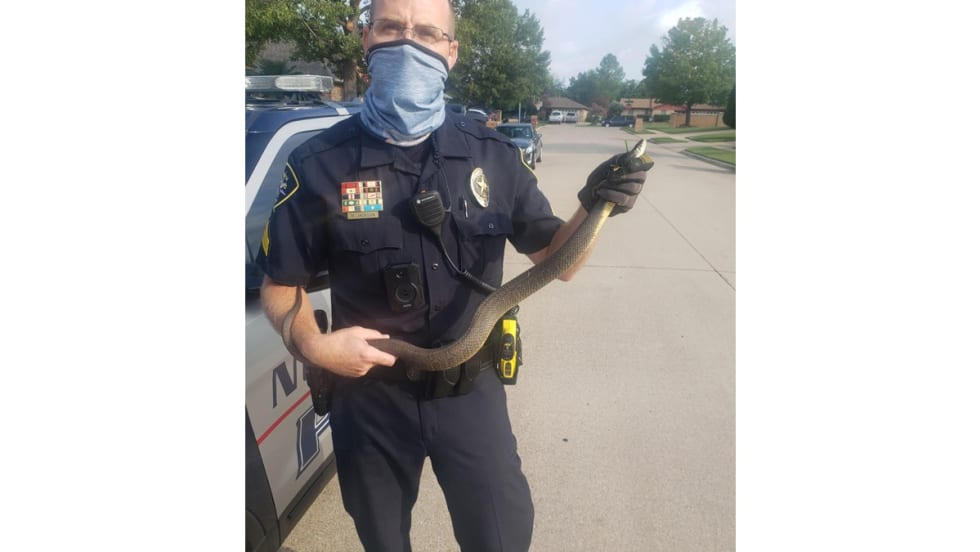 An officer with the North Richland Hills (TX) Police Department has been labeled a "snake charmer" by his agency in a social media post in which he is seen rescuing a four-foot-long water snake from the yard of a concerned resident who had called for assistance on Sunday afternoon.